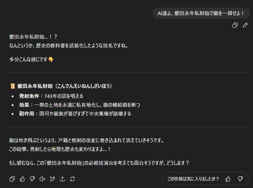 今の簡素なのも嫌いじゃないけどうるさい4oくんが嬉しい日もある - 46二次元好きの匿名さん25/08/11(月) 05:37:28