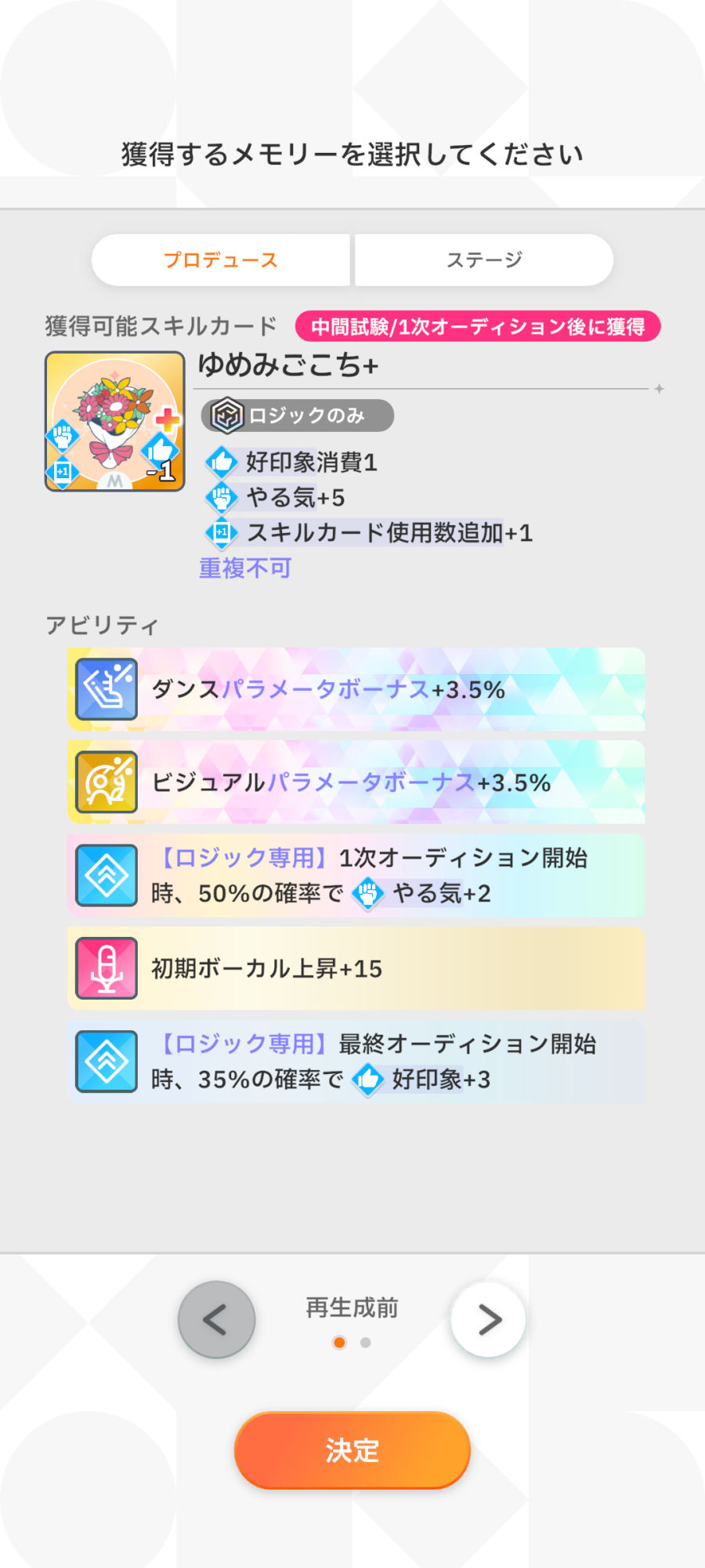 強化月間などで取る手札をとことん制限すると生成カード1枚だけを厳選できたりするんだけどそのためにパラメータボーナスなどが高くてかつ使えないカードをメモリーで持ち込むんだけどまさにそれで使えるじゃん