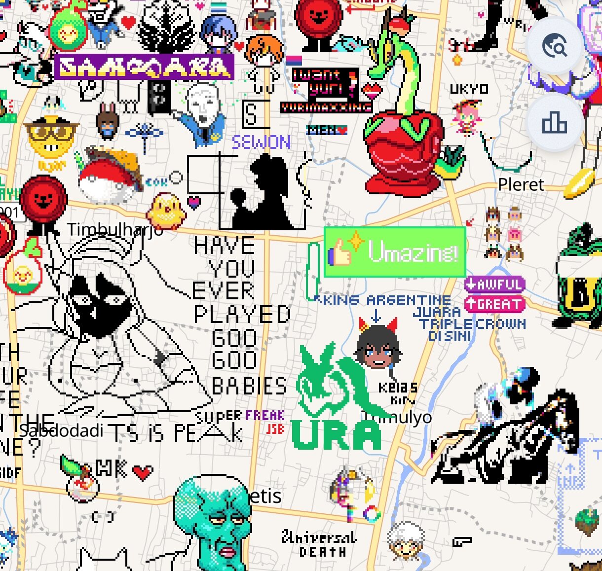 今サーバーエラー吐かれて何も出来ないんだけどこれって先に描かれてる上には描けないようになってるの?地道に未開拓の土地探して描く感じ?それとも上書き出来るの?