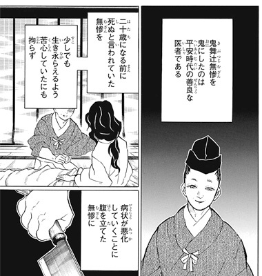 無惨は治療を進めた医者に腹を立て殺.害し、金を持って逃走する。