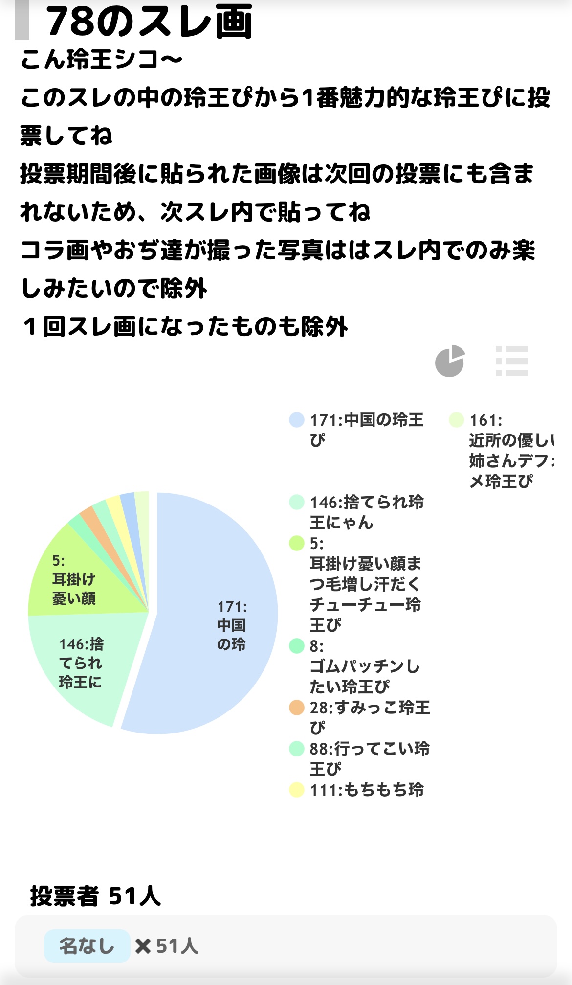 御影玲王に忠誠を誓いたい part32|あにまん掲示板エピ凪13話にて玲王の涙に脳を焼かれ、跪いて忠誠を誓った人達が集うスレ応援、雑談、更新前のソワソワ等も敬愛の気持ちがあればOKです!・忠誠心が溢れて敬語を使う民が多いですが強制ではありません。気軽に書…bbs.animanch.com御影玲王ファンスレ part28|あにまん掲示板容姿端麗、頭脳明晰、スポーツ万能な学園の王子様で御影コーポレーションの御曹司。純粋で大人になりきれないところもエリートなのに努力家なところも全部魅力的な御影玲王についてまったり語るスレポジティブな「こ…bbs.animanch.com投票結果