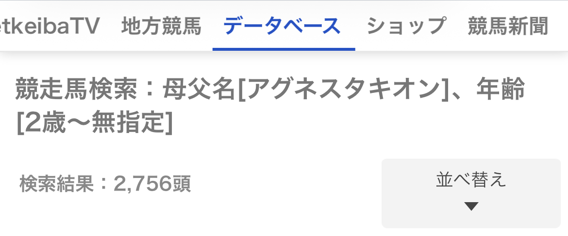ネット競馬のデータだと2歳以上の母父タキオン産駒が全部で2756頭みたいだからその数字っぽい