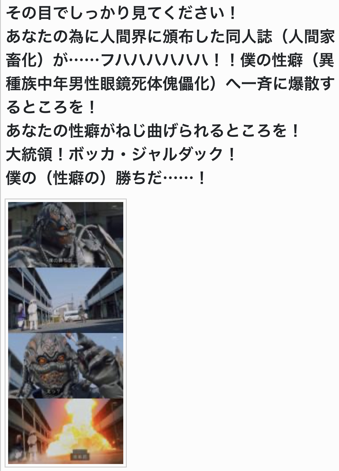 【閲覧注意】忌々しい…イカレ親父|あにまん掲示板執筆の才能もないのに、会社を食い潰し、揚げ句の果てに、異種姦NTRを流行らせるなどと…あの日からストマック家はおかしくなったいなくなって、せいせいした…ようやく、会社も軌道に乗ってきたというのに…とん…bbs.animanch.com初代スレ