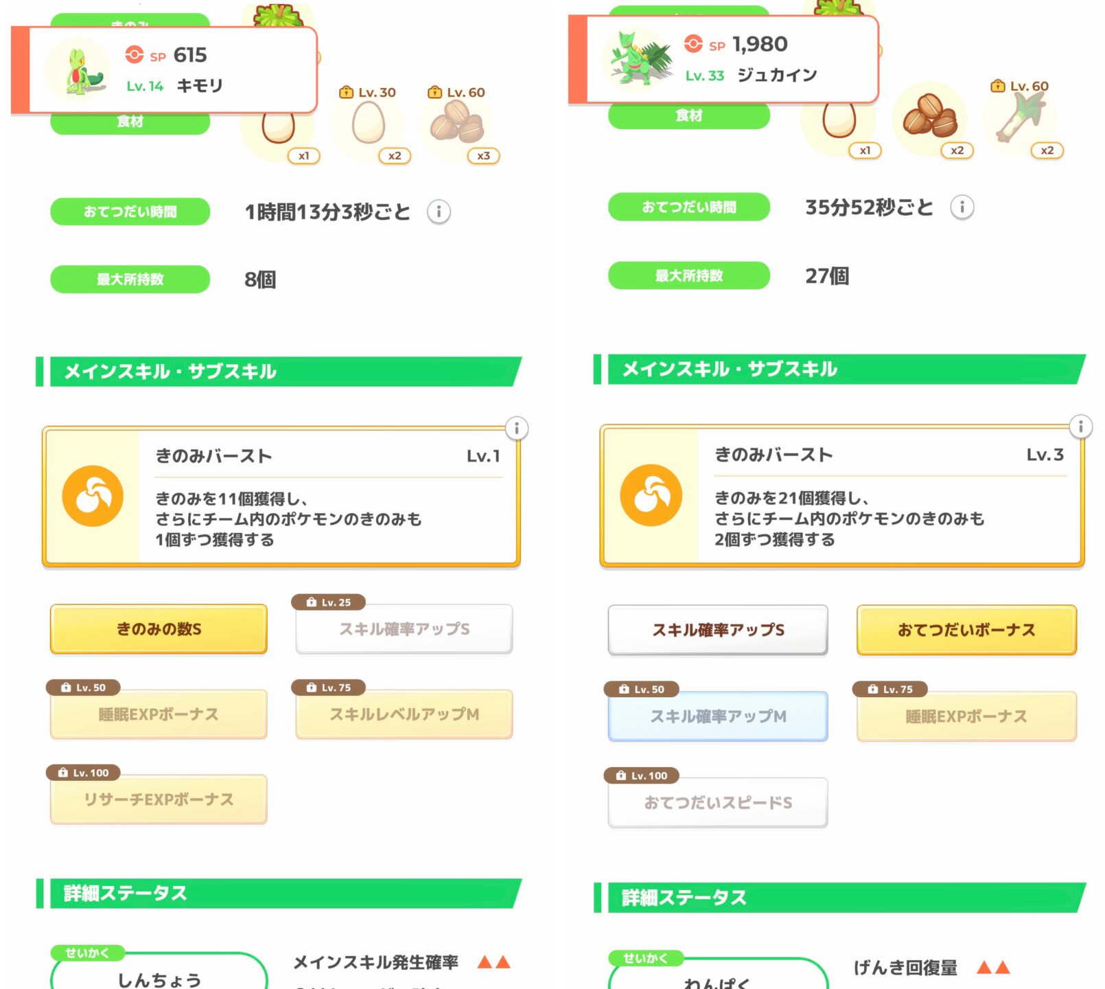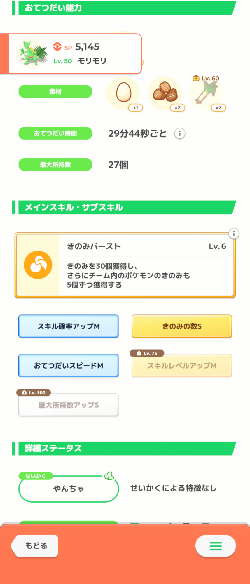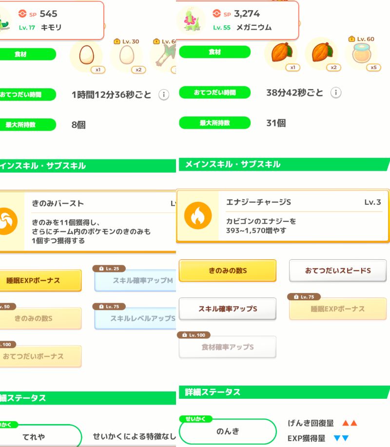 残念ながらきのみバーストはきのみSあることが大前提かな、きのバはレベルに比例するスキルなわけだけどレベルを上げる恩恵を最も大きく受けるスキルがきのみSなので