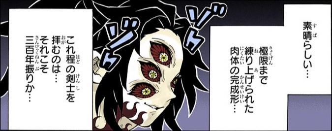 「これこそ数多いる鬼の中で選ばれた12人の精鋭、十二鬼月の証!俺はお墨付きを頂いているのだ!」