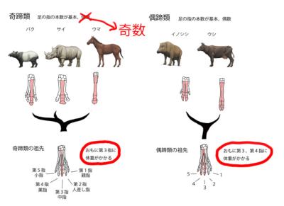 偶蹄目の方が二重滑車構造の距骨のお陰で足を屈曲できるから歩幅が広いのだけは確かだ
