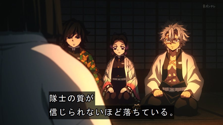 雷の呼吸の隊士は、使い捨てにしても比較的心が痛まないんだだから危険な任務に送られやすく柱条件を満たしやすくなっちまうんだ(鳴柱と今までと今の鳴柱候補の列を見ながら)