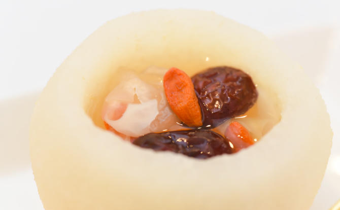 デザートは蒸し梨か梨のスープだな