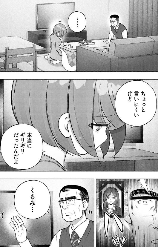 会社に寝泊まりしているのは単なるくるみの天然アピールの一環で深い意味は無いのかもしれないが、深読みするなら何らかの事情で家に帰りづらい、もしくは、郁夫に「もう社会人だから自分で生きろ」と実家追い出されたとか