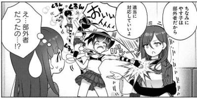俺もなれ合い禁止という割にはモチコ自身が部外者と紹介するやす子に事務所を間借りさせていたり、親友のくるみに事務所で寝ることを許していたりと、なれ合いの度合いがブレすぎているとは思う