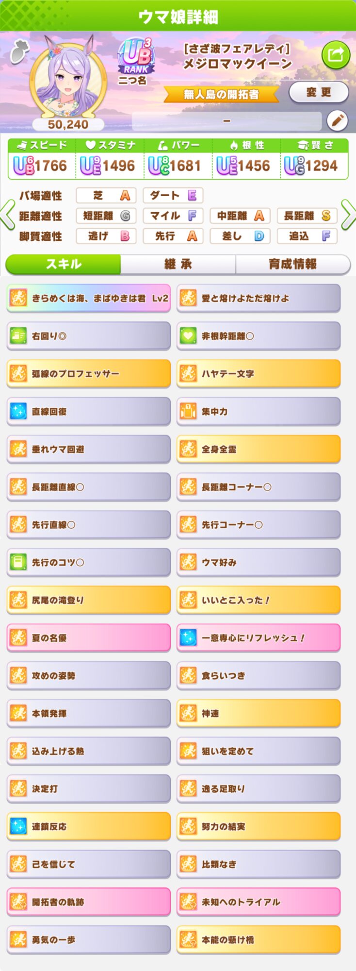逃げは継承固有の数だな。勝鬨DOYA以外に中盤固有3個くらいは積まないと先行が怖すぎる