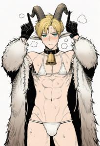 牛ビキニ着て赤面してるせっちゃんと酪農家の格好をしてるグラハムのグラ刹ください