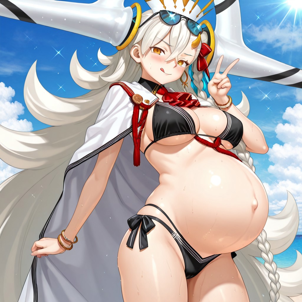 リクエストで夏イベの水着を着た岸波白野のボテ腹をお願いします