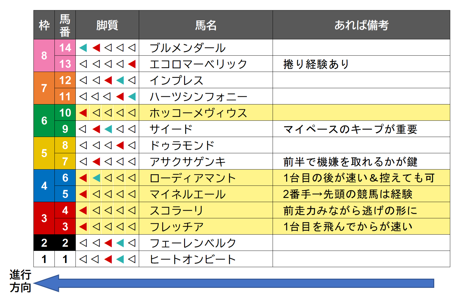同型が多く密集した並びでどこまで存在感を示せるか、試金石となります。 - 12出走馬について⑤⑥25/08/15(金) 18:10:53