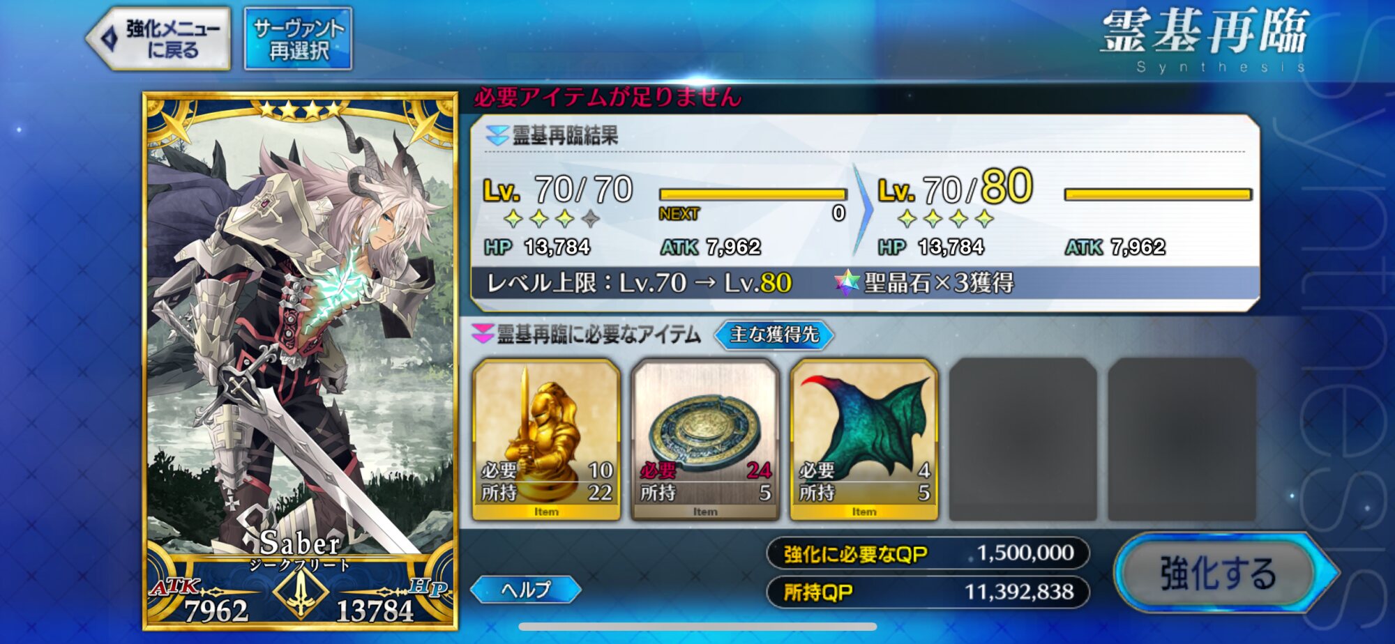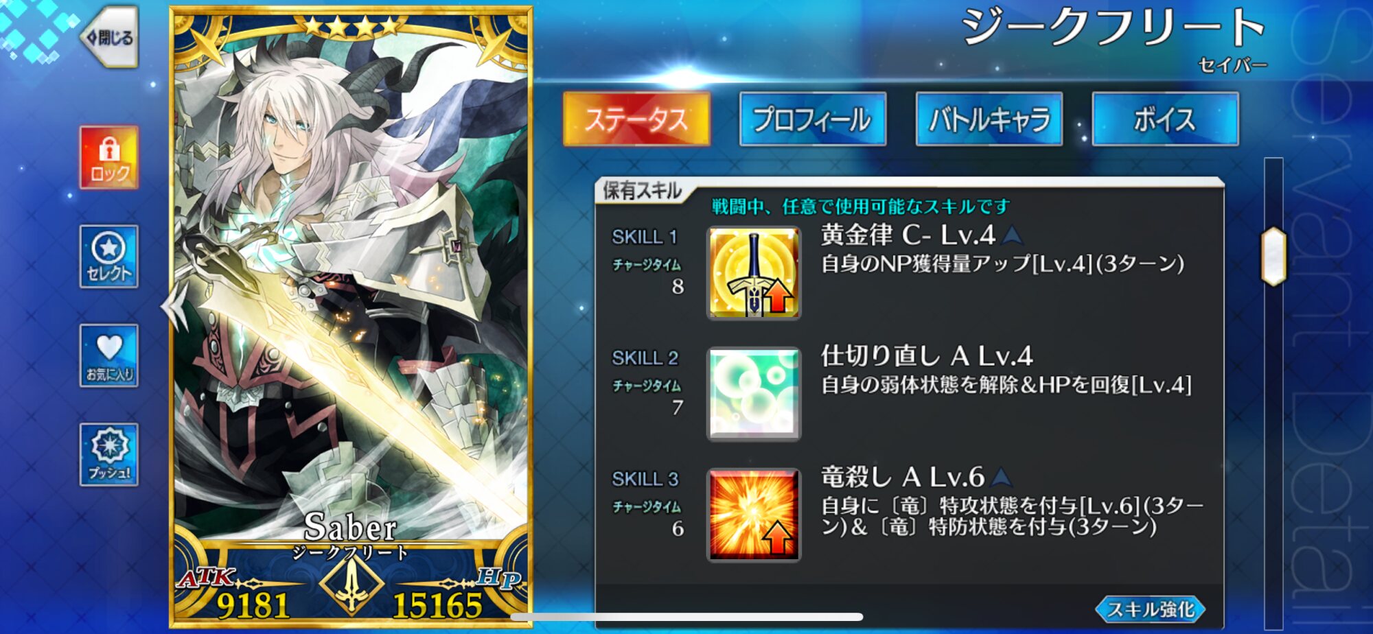 うおおおおおお!!今晩大急ぎで再臨させるから待っててくれジークフリート!!!聖杯貯まったらぶちこむからレベル100になろうな!