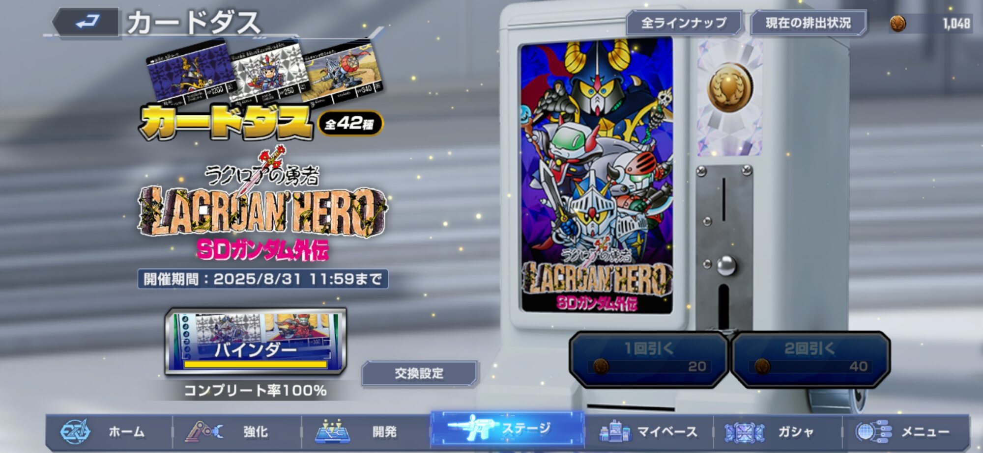 あの…SDガンダム外伝イベのカードダスがラインナップ変わらない7回目までコンプしたんスよ…