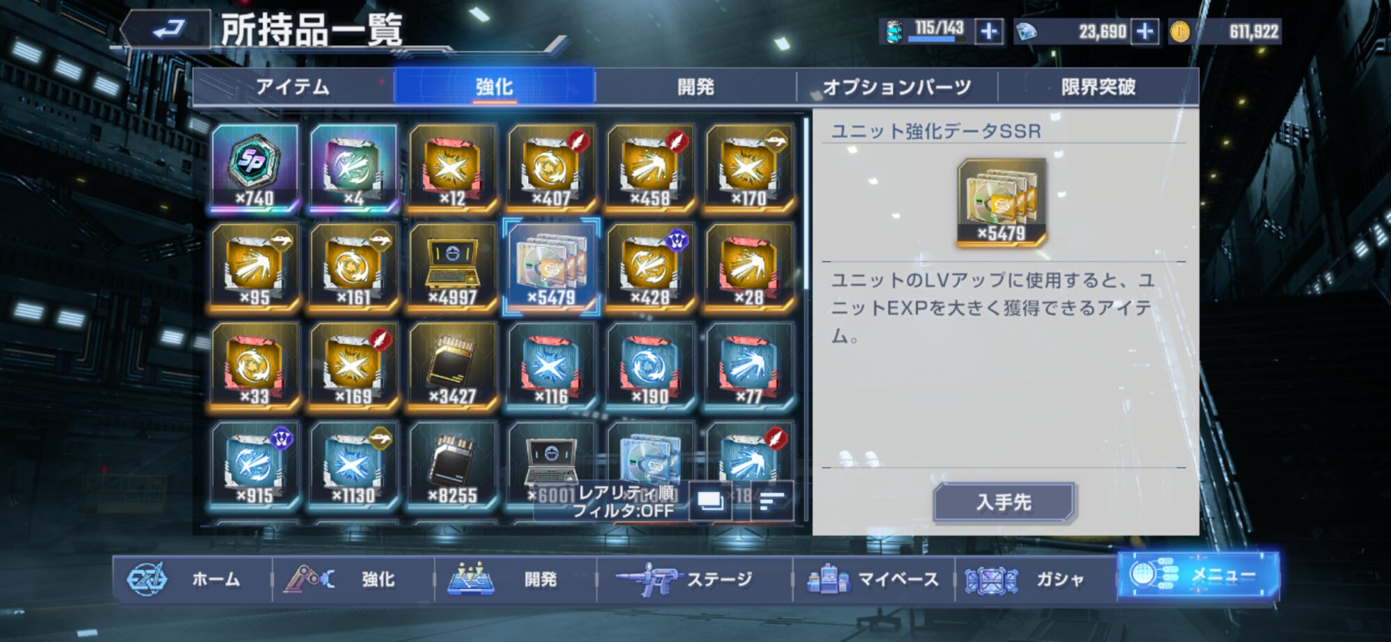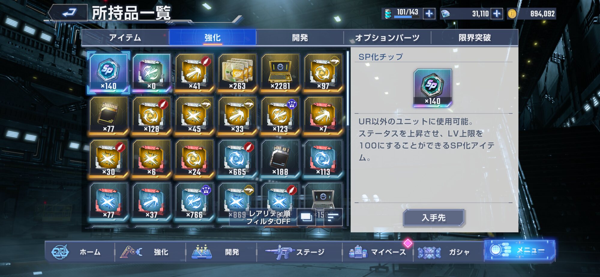 武装パーツ全交換してもうすぐSSR凸材交換まで視野に入ってるんだァ