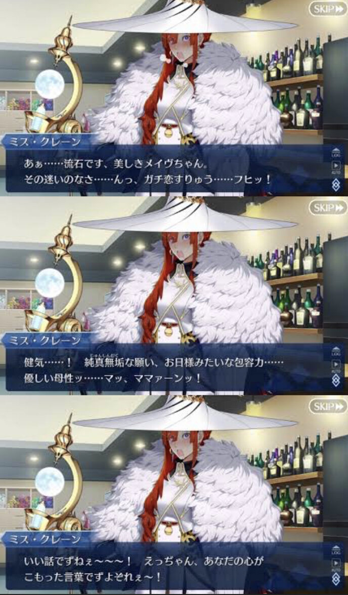 ワルツコラボは配布でクレーンさんとずっとコンビで動いてたヒロインXオルタがシナリオで登場した霊衣貰えずクレーンさんからの恩恵受けられなかったり、一番気になってたロマニとの関連性チラッとしか出さなかったり、当時連打されてたもう一人の自分との戦いパターンだったりでなんか残念な気持ちになったのを覚えている