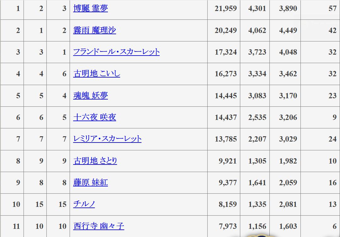 自分が東方にどっぷりだった時は妖夢の人気順位って6〜10位付近をうろうろしていたから
