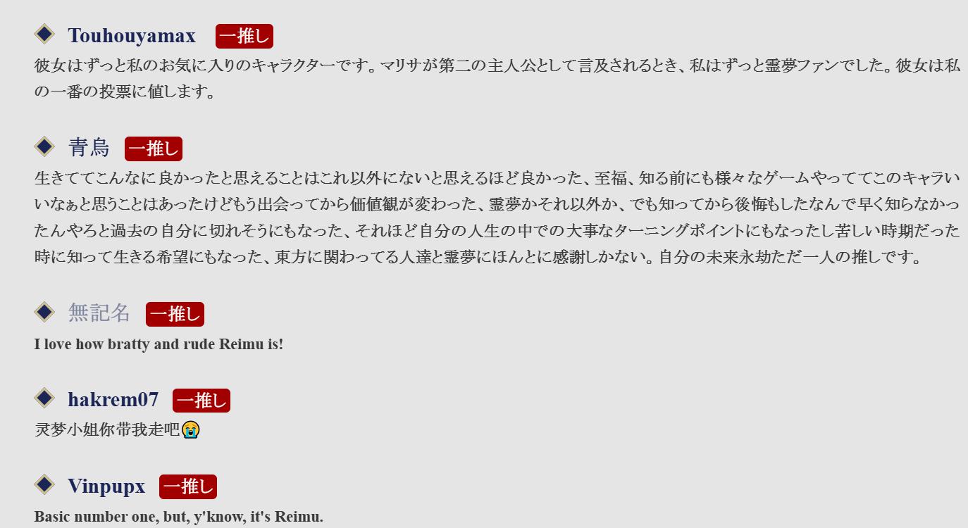 東方人気投票はアンケートも一緒に取ってるので答えてあげてね