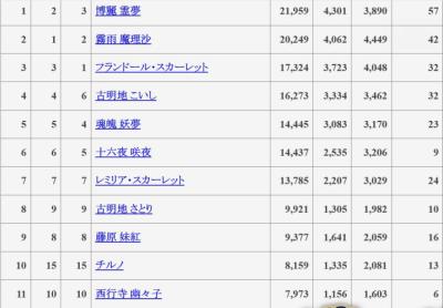 なんかSTGの原作より黄昏とかソシャゲとかの方が順位に影響してるイメージ