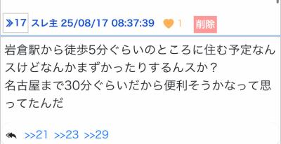 岩倉か…確かに名古屋には行きやすいがどこに行くにも名古屋経由になるぞ