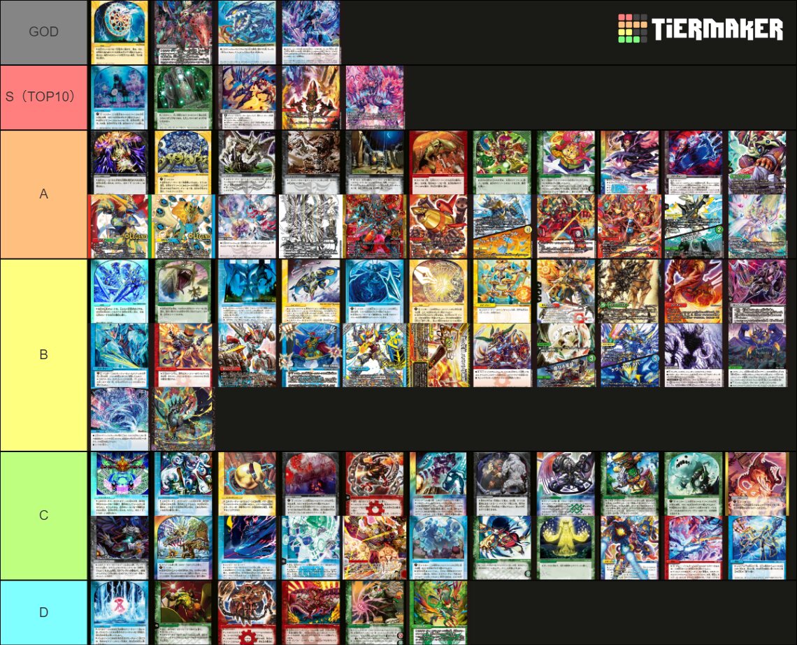 【殿堂解除選手権】殿堂カード最新Tierランキング(2024年8月改定版) | flat-デュエマ工房blogこんにちは、神結です。 8月の殿堂施行に伴って、新たに殿堂カードTierランキングを作成しました。 割と思い入れがあるシリーズなので、このサイトがある限りは続けていきたいな。 また私個人の思想に偏り過ぎるの ...flatdmkobo.comGODランク Sランクの中でも別格