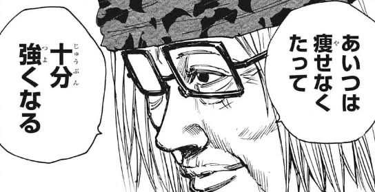 スレ絵右上の子供の頃の過去回想で全盛期の強さ見られると思ってたのに今とさほど変わらない描写だったのが悲哀を感じましたね