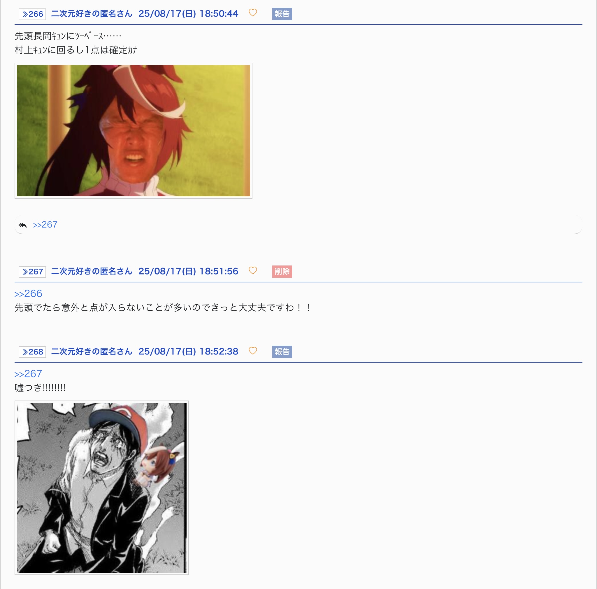 汚い流れすいませんでした、気力回復したらオレもヤジウマすっかな - 53二次元好きの匿名さん25/08/17(日) 17:22:36
