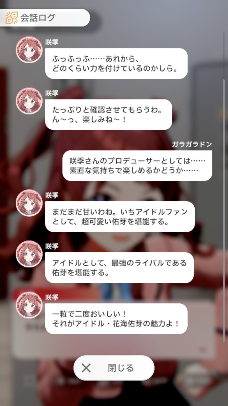 自分は咲季担だけど、佑芽ルートの咲季が一番気になる存在だからスレ主のように咲季が負けるのが嫌でも絶対に佑芽ルートはやってほしい