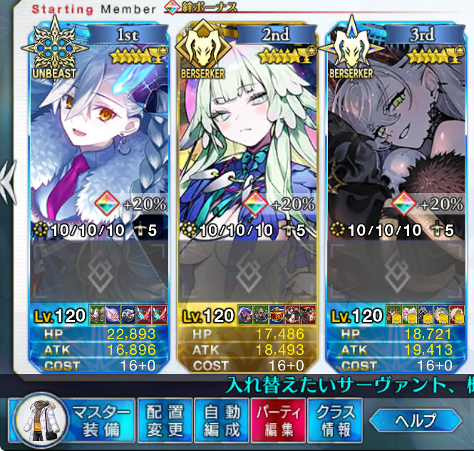 単体宝具鯖と全体宝具鯖を無理なく編成することで1、2waveで出てくる単体高HPや最終waveのボス相手に対応しやすくなった編成
