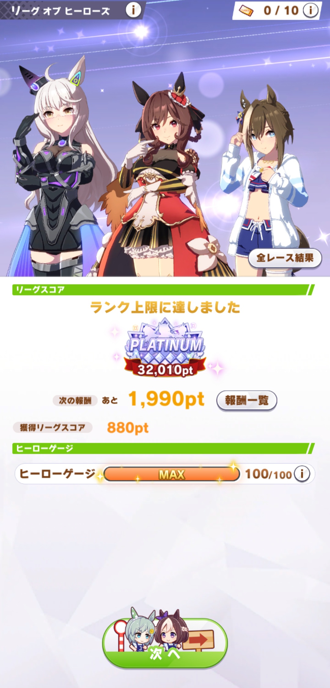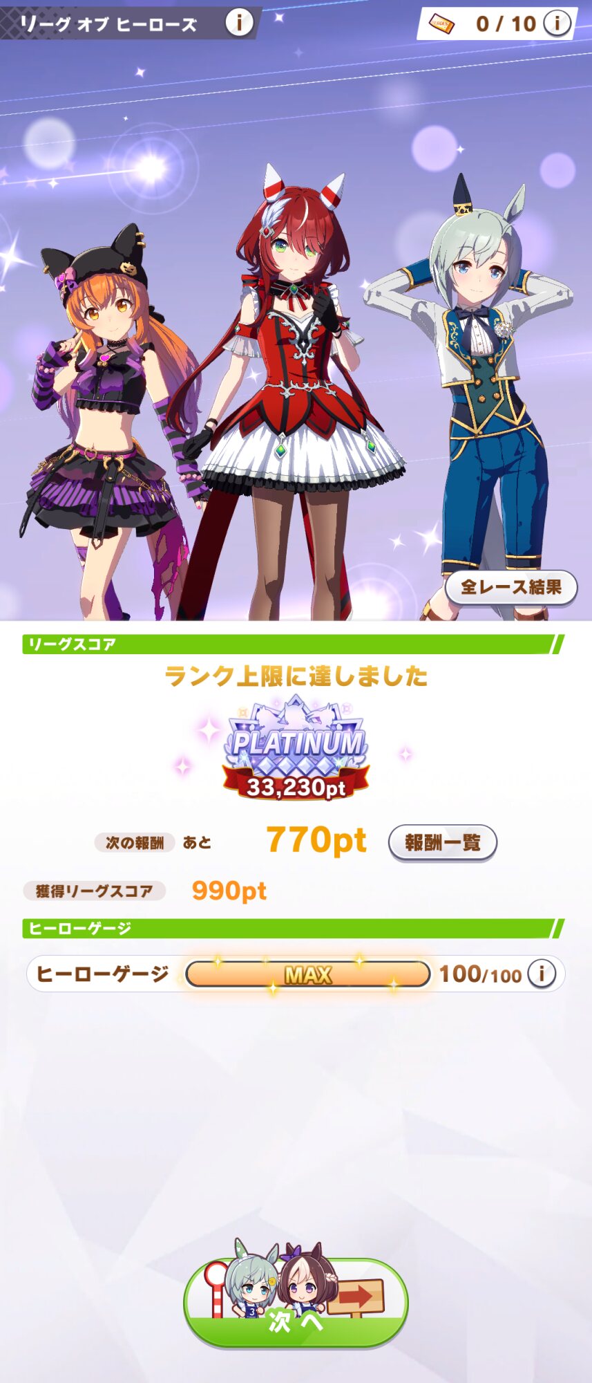 チケット3枚残しで-200点のプラチナ入り
