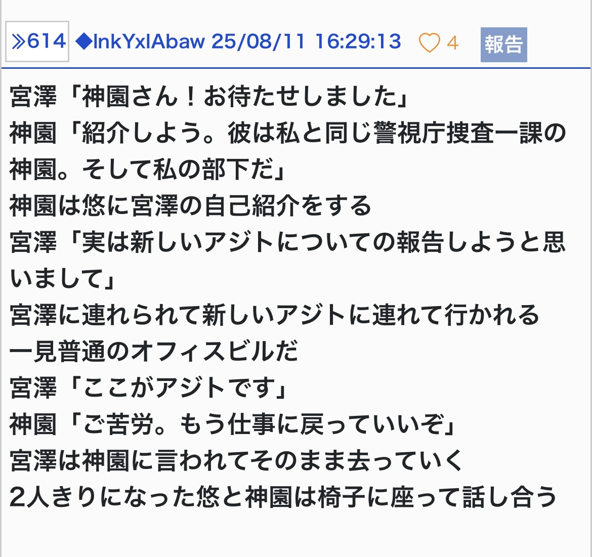 佐々木蛍「教えて!悠がどんな事に巻き込まれてるのか!」 - 19◆lnkYxlAbaw25/08/18(月) 22:53:05