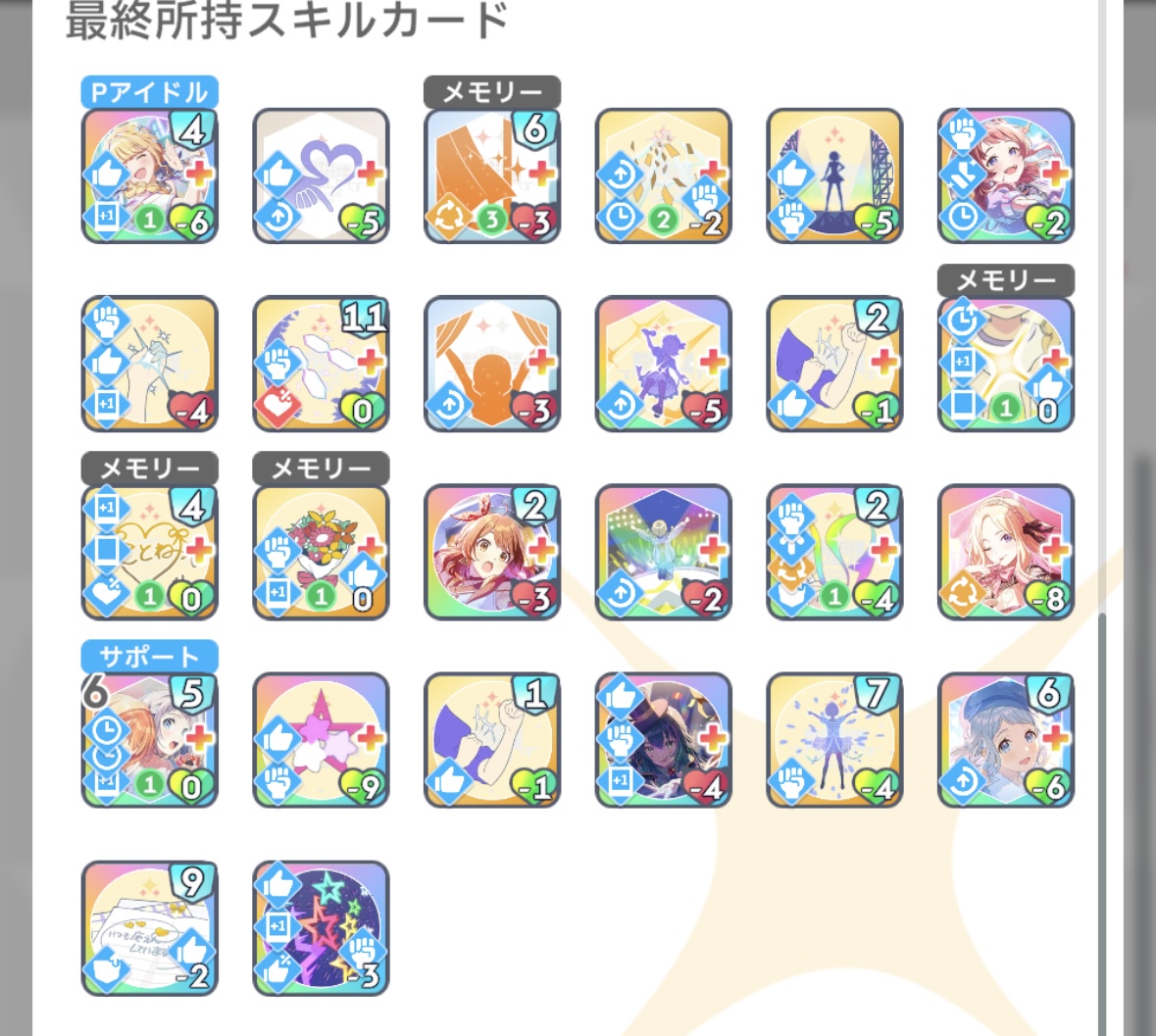 どうしても好印象で挑むなら普通に好印象のデッキ作りながら多少やる気の要素を入れてバレ星南固有を補助程度に使うのがいいと思う
