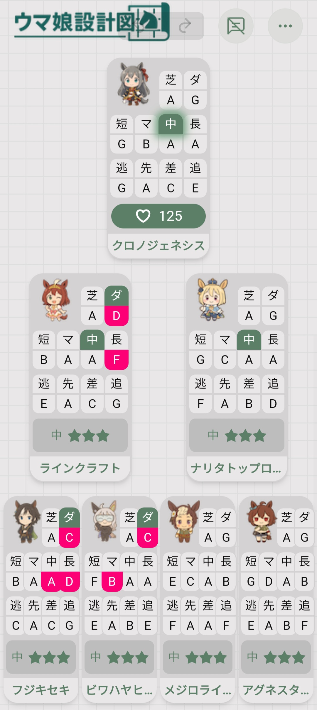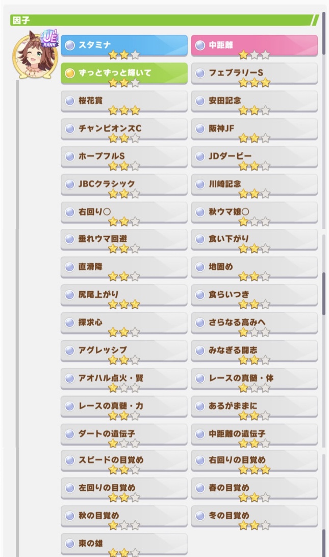 長距離捨てて中距離12か脚質6積んで遺伝子狙った方がいい気がするんだがどうせクラフト菊花走れないし