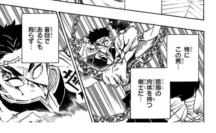 鬼の配下のトップに惚れられるほどの肉体美と技術をもつ鬼殺隊最強の岩柱