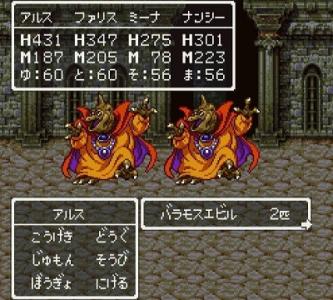 ・FC版4のデスピサロ戦で第一・第二形態のうちに補助呪文を行き渡らせてから最終形態まで1ターンキルし続けてそのまま開幕の有利を取る戦術がある