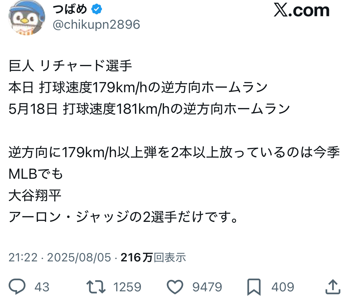 ⋯で、リチャードが出てるだけで巨人の試合が気になって経過を追うのが俺!