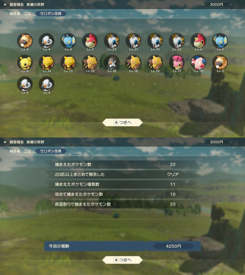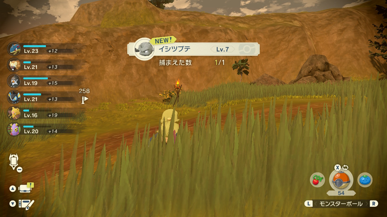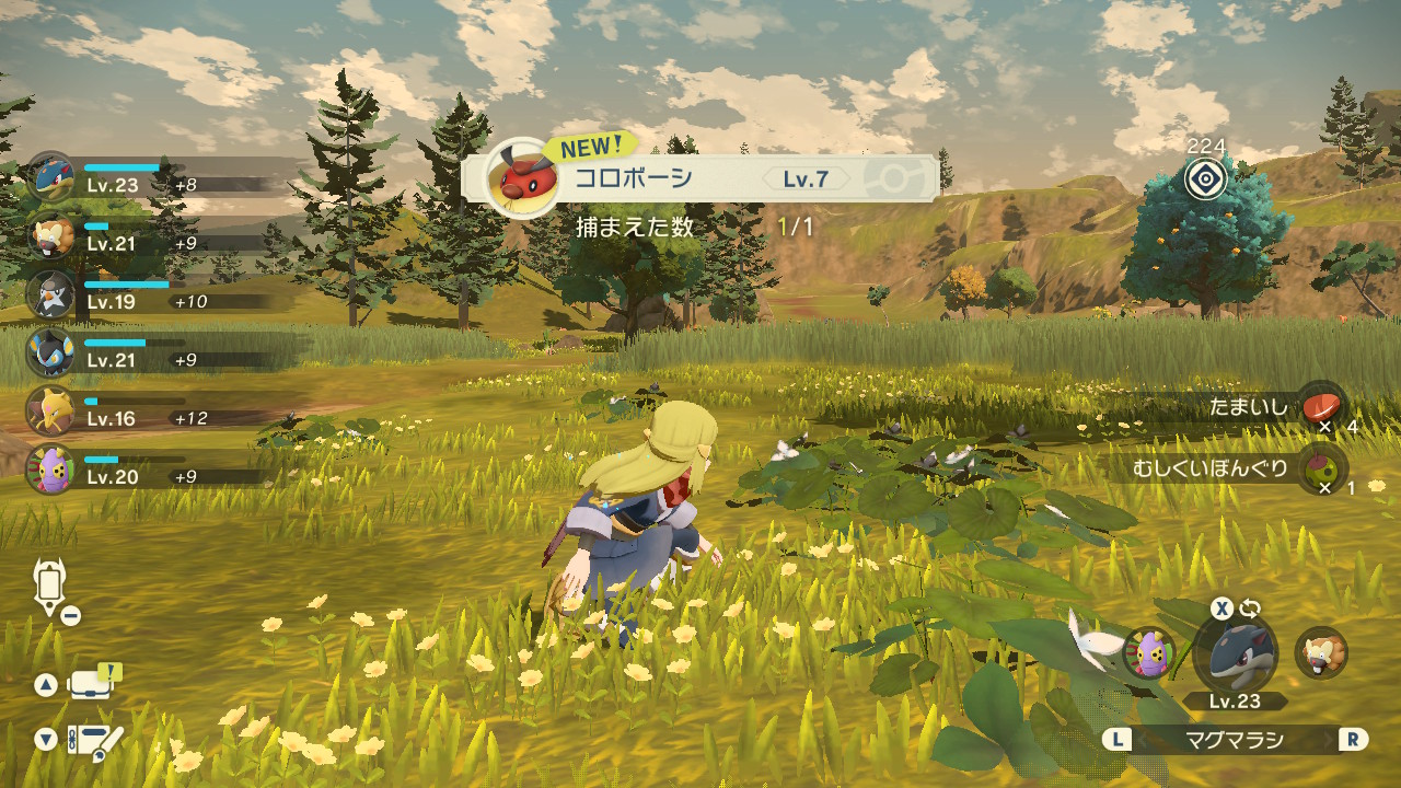 初回の捕獲でレベル2ケタのポケモンをゾロゾロ連れて帰ってコトブキムラの人達を怖がらせましょう!