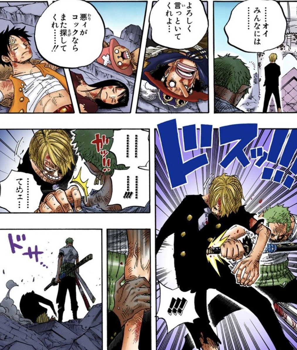 あのシーン、ニコニコの笑顔とゾロが意思を持ってサンジに会いに行ったという衝撃が強かったな…