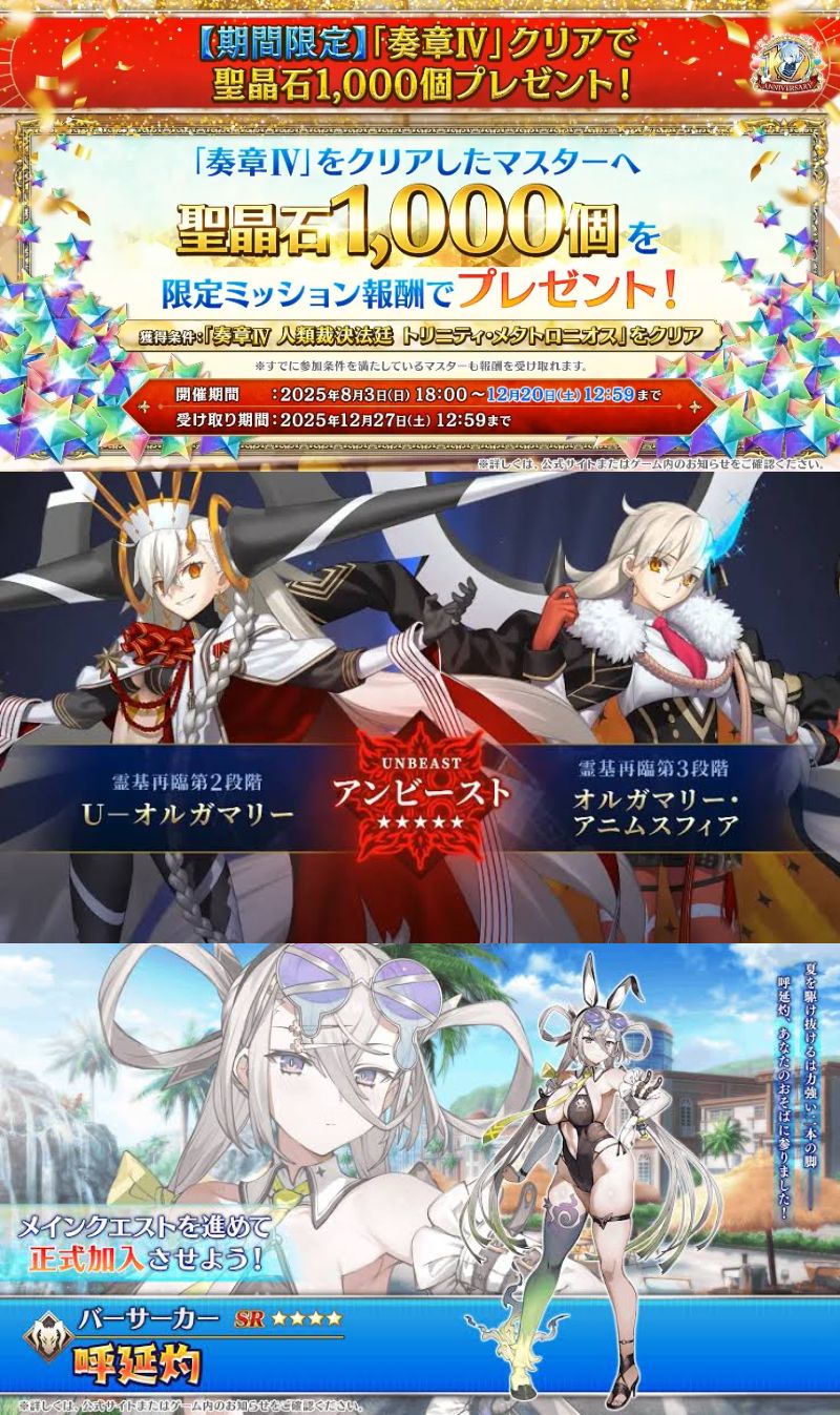 9周年→水着エレシュキガル+水着イベがまさかの奏章3