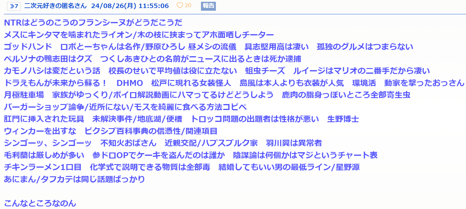 別にタフカテじゃなくても愚弄スレばかり伸びるのん