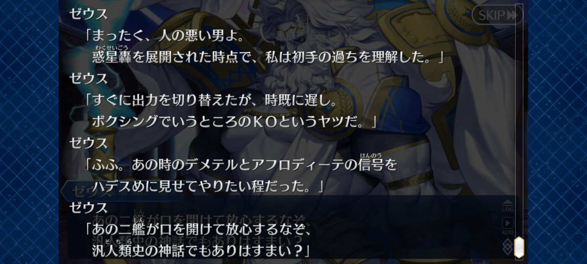 ゼウス実装されたら汎用人類史でのギリシャ神話内での話を色々聞けそうで面白そうなんだけどな