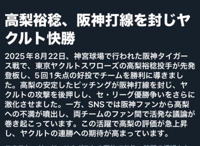 ウマ娘が12球団のプロ野球を応援するそうです 2025その196|あにまん掲示板私たちウマ娘がプロ野球を実況し応援するスレですわ!口汚く罵ったり蔑称を用いて揶揄するようなはしたない行為はやめてくださいまし!前スレですわ!(ウマ娘が12球団のプロ野球を応援するそうです 2025その…bbs.animanch.com - 2二次元好きの匿名さん25/08/22(金) 19:24:36