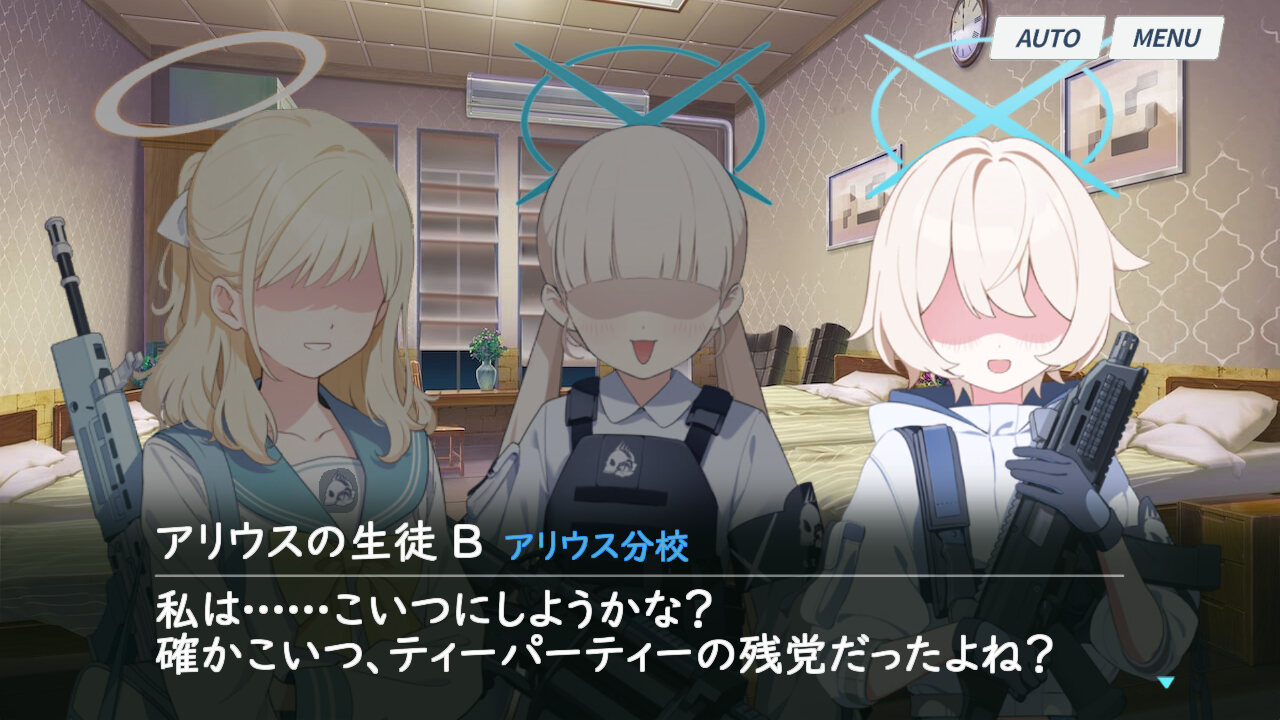 ティーパーティーやシスターフッドや救護騎士団が少しずつ中身をアリウスに乗っ取られていくシチュエーションいいよね