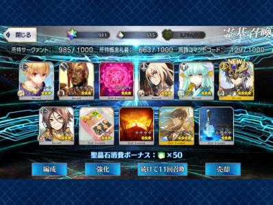 天井分の石で星5 5体 決して悪くはない結果なのに半分以上が0.2%のすり抜けは辛すぎるね..