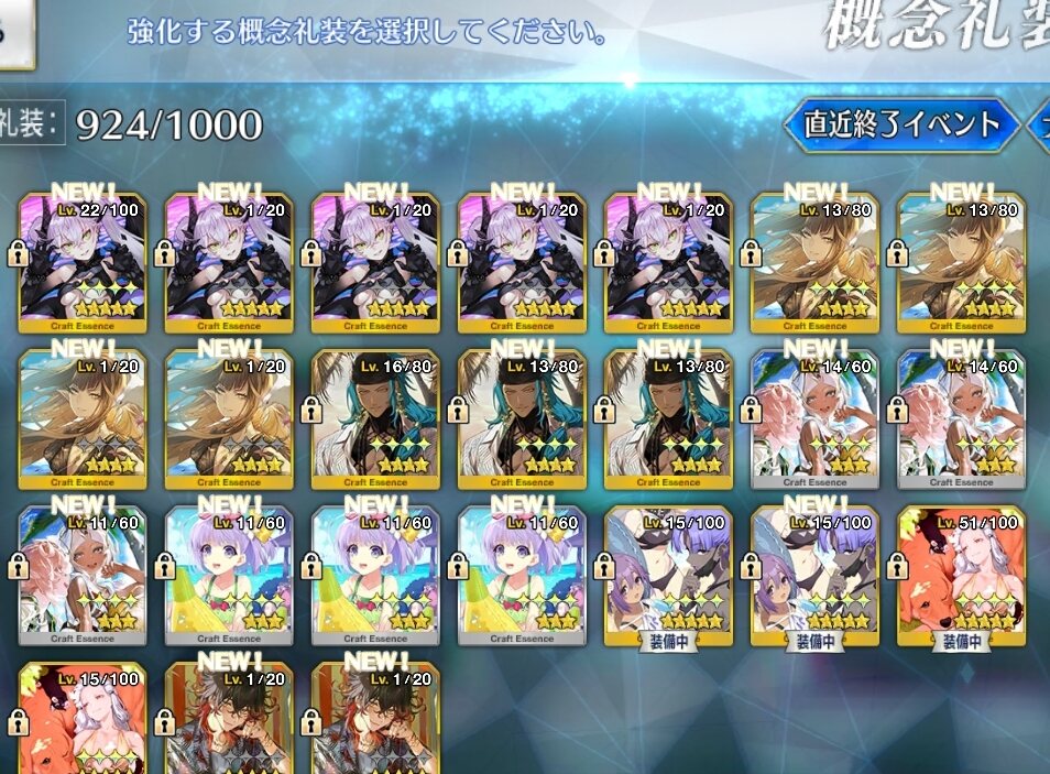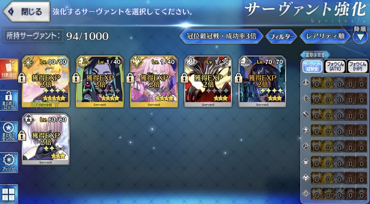 現在、星5の子が一気に増えたのもあり、種火が枯渇しているので、全体的に育成が少しづつな感じです。