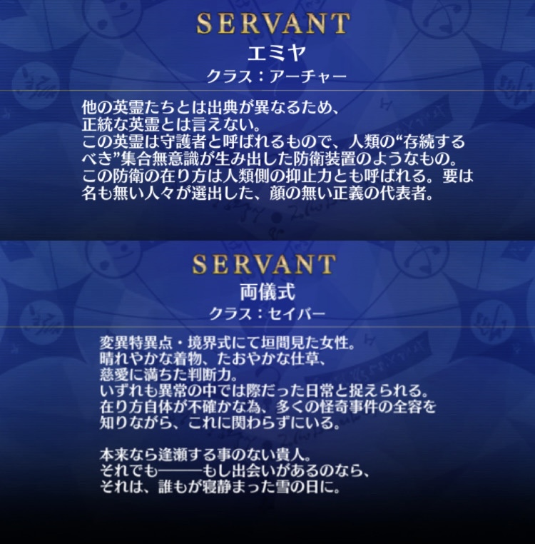 英霊って過去の偉人や神話、小説作品からなってたはずだと思うのですが、エミヤって人聞いたことない名前なので…。これを言うと両儀式、君も誰?って感じで。結局君たち何者??