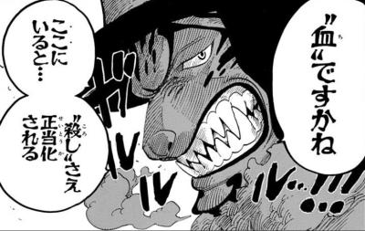 スパンダム相手に「血ですかね」と言うコマは仕事上の建前だな