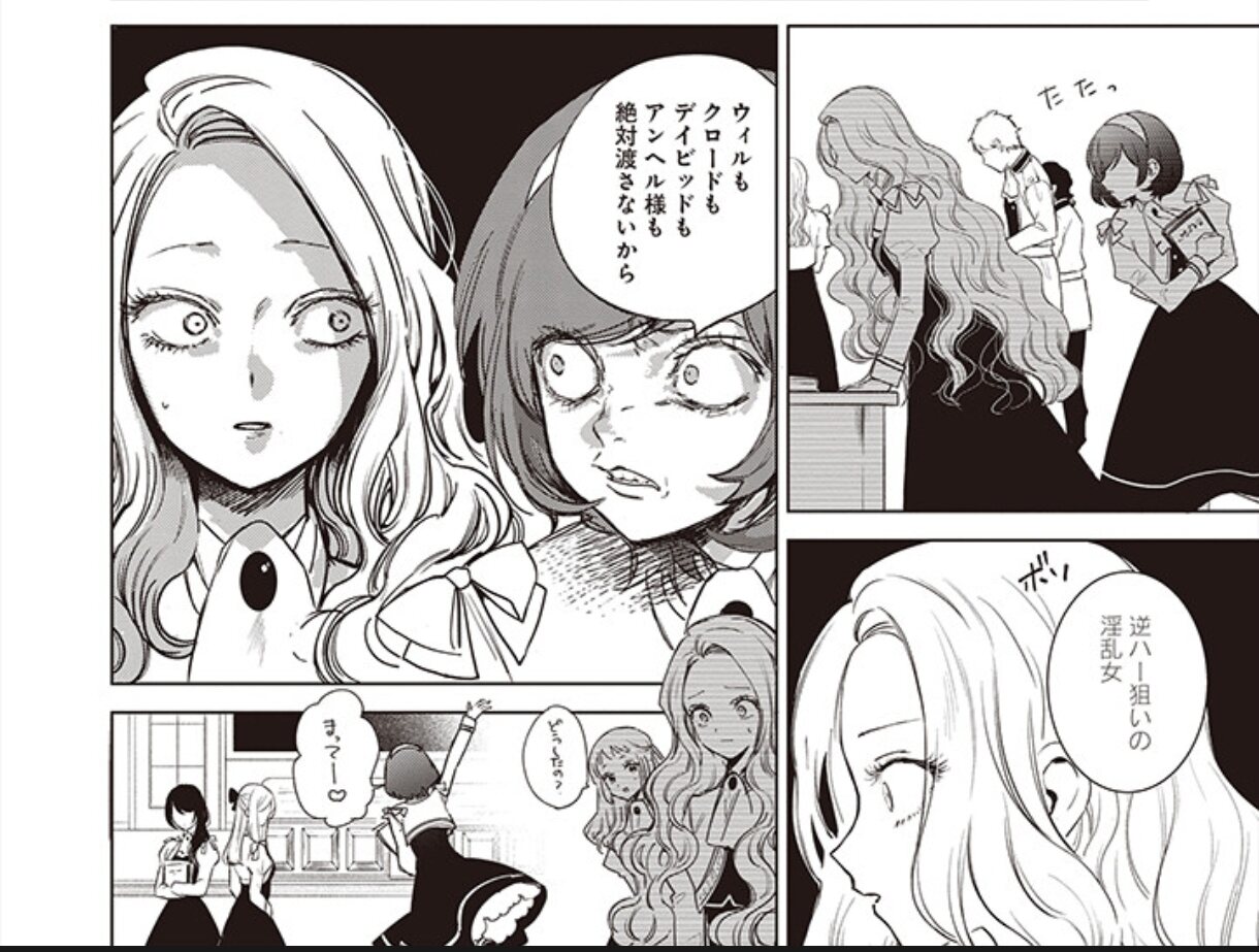 「ウィルもクロードもデイビッドもアンヘル様も絶対渡さないから」のところアニメ放送した時にコミカライズ版を受け継ぐのか原作小説の方準拠で行くのか気になる